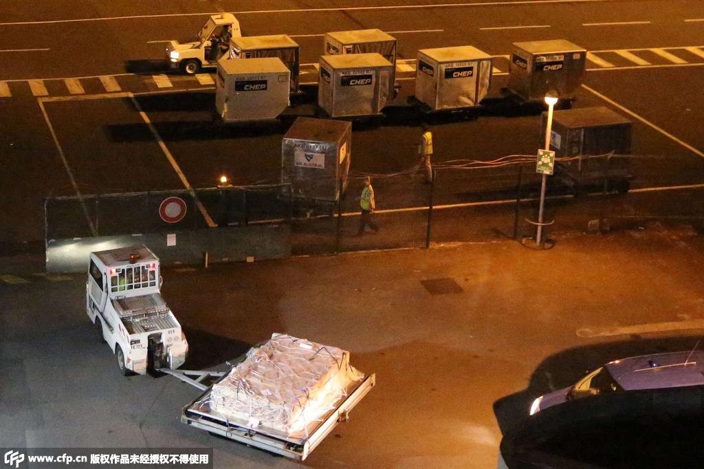 當(dāng)?shù)貢r間2015年7月31日,法國留尼汪島,機(jī)場車輛運(yùn)輸發(fā)現(xiàn)的疑似MH30副翼,機(jī)翼殘骸將被運(yùn)往法國。