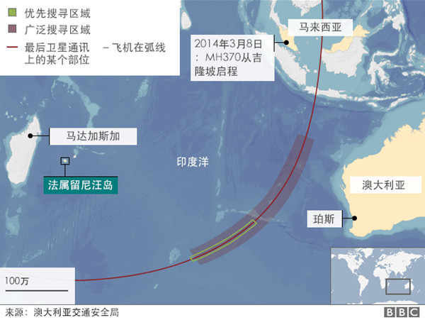 此前搜尋MH370航班的范圍主要集中在印度洋南部靠近澳大利亞西海岸的海域,而法屬留尼汪島位于這一區(qū)域以西約4000多公里外。