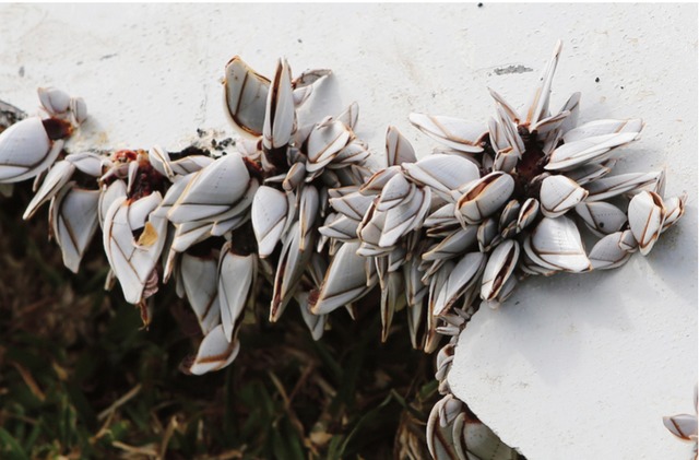 ????藤壺是一種有石灰質(zhì)外殼的動物,它會分泌一種黏合力極強的膠質(zhì),即便風(fēng)吹浪打也沖刷不掉。任何漂浮在海上的碎片都會被藤壺所附著。