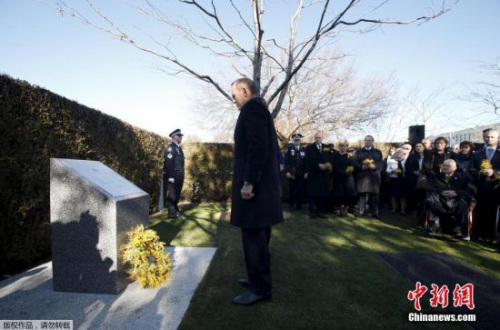 資料圖:當地時間2015年7月17日,澳大利亞堪培拉,馬航MH17空難一周年之際,國會大廈外舉行馬航MH17遇難者紀念碑揭幕儀式,澳大利亞總理托尼·阿博特攜妻子向紀念碑獻花。2014年7月17日,載有298人的馬航MH17客機在靠近俄羅斯邊界的烏克蘭頓涅茨克地區(qū)墜毀,機上乘客與機組成員全部遇難。