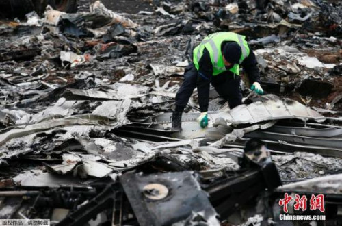 資料圖:當(dāng)?shù)貢r間2014年11月16日,烏克蘭頓涅茨克地區(qū),墜毀MH17飛機殘骸收集工作進行中。據(jù)悉,在事故現(xiàn)場已成功搜尋到起落架的部分殘骸,一大塊機身殘片和以及疑似乘客遺體。專家們希望將這些殘骸運往荷蘭之后,能夠通過技術(shù)手段還原某個部件,以確定事故具體原因。