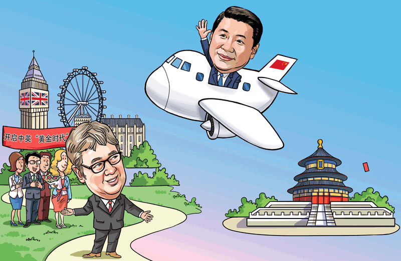 白金漢宮張燈結(jié)彩,契克斯別墅秋意正濃,倫敦金融城翹首企盼——訪問期間,英國王室和政府將高規(guī)格接待習(xí)主席,全球矚目。習(xí)主席將同英方領(lǐng)導(dǎo)人就雙邊關(guān)系和共同關(guān)心的國際地區(qū)問題坦誠、深入交換意見,為兩國關(guān)系確定新的定位、樹立新的目標(biāo)、制定新的規(guī)劃。習(xí)主席還將出席一系列經(jīng)貿(mào)合作和人文交流活動(dòng),在英國議會(huì)、倫敦金融城等地發(fā)表重要演講。我們深信,此訪將掀開中英全面戰(zhàn)略伙伴關(guān)系的新篇章,推動(dòng)中英關(guān)系昂首步入璀璨輝煌的“黃金時(shí)代”。(作者系中國社會(huì)科學(xué)院世界經(jīng)濟(jì)與政治研究所國際政治經(jīng)濟(jì)學(xué)研究室副主任徐秀軍 漫畫作者李旻)