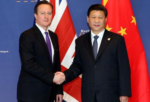 資料圖片:2014年3月25日,中國國家主席習(xí)近平在荷蘭會見英國首相卡梅倫。