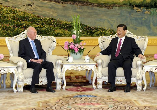 中新關(guān)系的另一奠基人新加坡建國總理李光耀生前曾多次訪問中國,與多位中國領導人會面。2011年5月,時任國家副主席習近平在北京會見了他,高度贊賞他作為中新關(guān)系奠基人和中國人民的老朋友多年來為促進中新關(guān)系發(fā)展作出的重要貢獻。