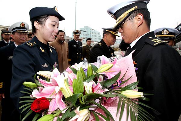 圖為中國(guó)海軍女兵向來訪的新加坡海軍軍官獻(xiàn)花。2010年3月8日,新加坡海軍登陸艦首訪上海。 當(dāng)日,新加坡海軍“堅(jiān)持”號(hào)登陸艦在艦長(zhǎng)李順達(dá)海軍中校率領(lǐng)下駛抵上海,開始對(duì)上海進(jìn)行為期5天的友好訪問。這是“堅(jiān)持”號(hào)第一次訪問上海。
