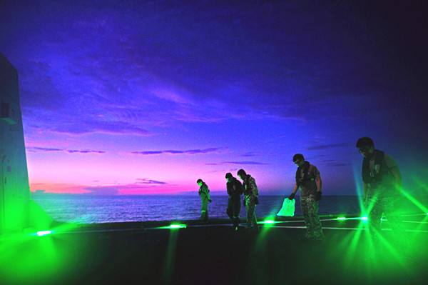 圖為 2015年5月25日,新加坡海軍“剛毅”號(hào)護(hù)衛(wèi)艦士兵進(jìn)行直升機(jī)起降準(zhǔn)備工作。當(dāng)日,中國(guó)海軍“玉林”號(hào)導(dǎo)彈護(hù)衛(wèi)艦與新加坡海軍“剛毅”號(hào)護(hù)衛(wèi)艦、“奮勇”號(hào)導(dǎo)彈巡邏艦在馬來半島以東海域順利完成了代號(hào)為“中新合作-2015”的海上雙邊軍事演習(xí)。這是中新兩國(guó)首次進(jìn)行的雙邊海上軍事演習(xí)。