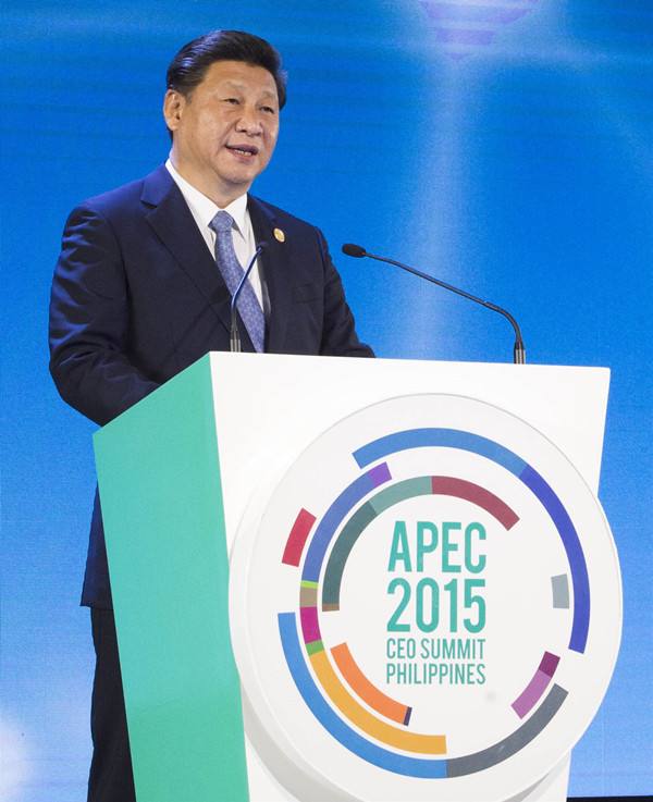 2015年11月18日,國家主席習近平在菲律賓馬尼拉出席亞太經(jīng)合組織工商領導人峰會并發(fā)表主旨演講。