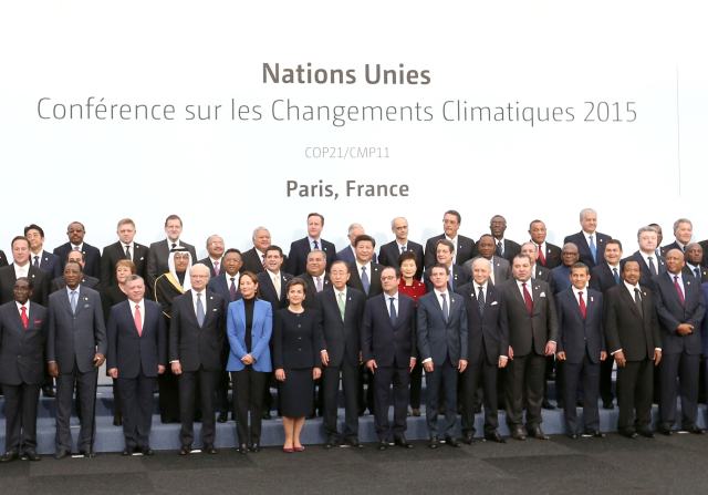 11月30日,國家主席習(xí)近平在巴黎出席氣候變化巴黎大會開幕式并發(fā)表題為《攜手構(gòu)建合作共贏、公平合理的氣候變化治理機(jī)制》的重要講話。這是與會領(lǐng)導(dǎo)人合影。新華社記者馬占成攝