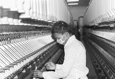 天利紡紗(毛里求斯)有限公司紡紗廠的外籍員工在工作。記者 倪 濤攝