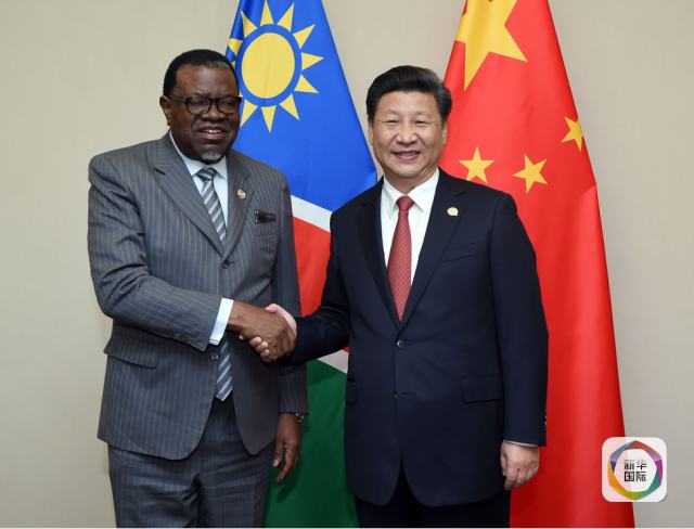 12月4日,國(guó)家主席習(xí)近平在約翰內(nèi)斯堡會(huì)見(jiàn)納米比亞總統(tǒng)根哥布。(新華社記者張鐸攝)