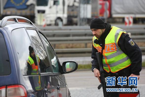 在比利時(shí)東部靠近德國亞琛的邊界,德國警方設(shè)置了路障,檢查過往車輛。記者在高速公路檢查站看到,兩名德國特警把守兩邊,所有車輛逐一通過。需要進(jìn)一步檢查的車輛按指揮進(jìn)入特定區(qū)域,德國警方要求被檢車輛司機(jī)出示證件,并對汽車內(nèi)部進(jìn)行仔細(xì)翻查。檢查站中??苛耍保岸噍v各型警車,值勤警察荷槍實(shí)彈,檢查站旁還有一架警方直升機(jī)。