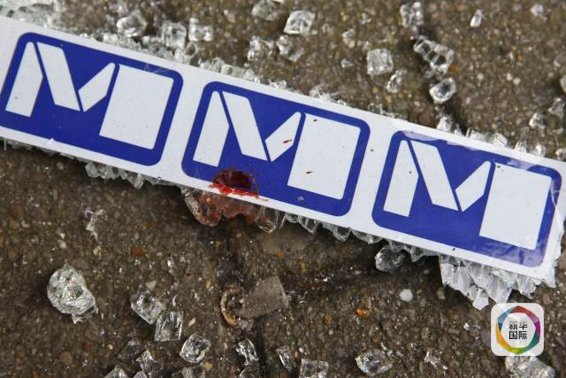 這是3月22日在比利時(shí)首都布魯塞爾馬埃勒貝克地鐵站一個(gè)出口處拍攝的沾有血滴的地鐵標(biāo)志。 新華社記者葉平凡攝