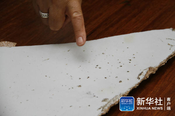 ↑這張3月3日拍攝的資料照片顯示的是,在莫桑比克首都馬普托,莫桑比克民航管理局局長(zhǎng)若昂·德阿布雷烏在新聞發(fā)布會(huì)上向記者展示飛機(jī)殘片上密集的凹凸點(diǎn)。新華社記者 李曉鵬 攝