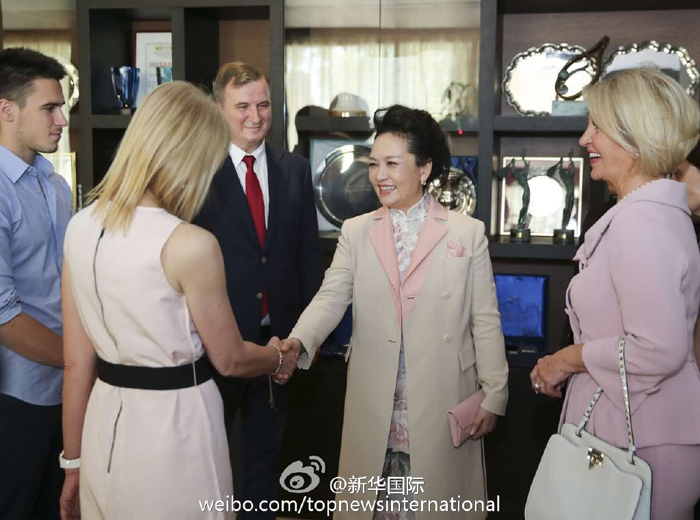 ??? 新華網北京6月18日電 18日中午,彭麗媛在塞爾維亞總統(tǒng)夫人德拉吉察陪同下,參觀了德約科維奇網球培訓中心,并同塞爾維亞著名網球運動員德約科維奇的母親、叔父和弟弟親切會面。彭麗媛對德約科維奇家人說:“小德在中國擁有很多粉絲?!迸睇愭路Q贊德約科維奇不僅球技精湛而且充滿愛國情懷。彭麗媛還向網球培訓中心贈送德約科維奇自傳《一發(fā)制勝》的中文版。?(新華社新華國際微博報道)