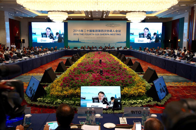圖為9月1日,2016年二十國集團第四次協(xié)調(diào)人會議在浙江杭州舉行。 (新華社記者金立旺攝 )
