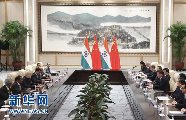 9月4日,國家主席習(xí)近平在杭州會見在華出席二十國集團(tuán)領(lǐng)導(dǎo)人杭州峰會的印度總理莫迪。 新華社記者 丁林 攝