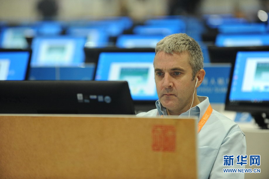 二十國集團(tuán)領(lǐng)導(dǎo)人第十一次峰會9月4日至5日在浙江杭州舉行。峰會新聞中心一派繁忙景象,境內(nèi)外各路媒體記者使出“洪荒之力”,實(shí)時報道峰會動態(tài)。新華網(wǎng)記者 陳競超 攝