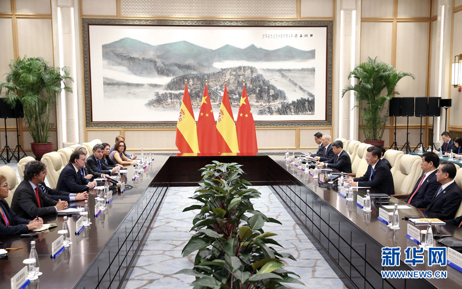 新華社杭州9月5日電(記者楊依軍、段菁菁)國(guó)家主席習(xí)近平5日在杭州會(huì)見(jiàn)前來(lái)出席二十國(guó)集團(tuán)領(lǐng)導(dǎo)人峰會(huì)的西班牙首相拉霍伊。