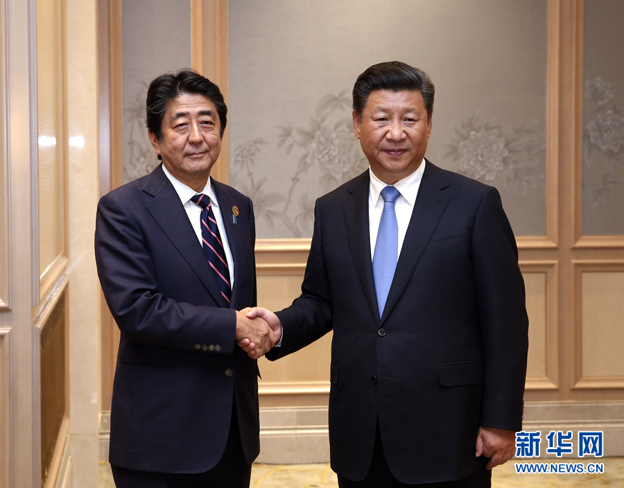 9月5日,國家主席習(xí)近平在杭州會見來華出席二十國集團領(lǐng)導(dǎo)人峰會的日本首相安倍晉三。 新華社記者龐興雷攝