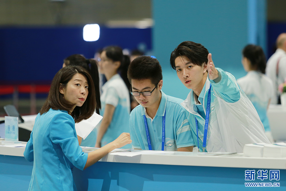 ????“小青荷”是此次峰會(huì)志愿者的代名詞。這個(gè)名字取自宋代詩(shī)人楊萬(wàn)里描寫杭州的詩(shī)句“接天蓮葉無(wú)窮碧,映日荷花別樣紅”,“青荷”也音同“親和”,他們成了G20杭州峰會(huì)新聞中心里一道亮麗的風(fēng)景。新華網(wǎng) 祝立銘 攝