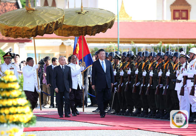 抵達(dá)金邊之前,習(xí)主席在當(dāng)?shù)刂髁鲌?bào)紙《柬埔寨之光》發(fā)表署名文章,用“肝膽相照的好朋友”“情同手足的好鄰居”形容中柬友誼。如此情感外溢的表達(dá),在中國(guó)外交用語(yǔ)中并不多見(jiàn)。?中柬之間這份濃濃的特殊情誼自習(xí)主席甫抵機(jī)場(chǎng)便撲面而來(lái)。24名柬埔寨禮兵分列紅毯兩側(cè),白色頭盔、藍(lán)色制服,分外莊嚴(yán)。對(duì)外國(guó)領(lǐng)導(dǎo)人的國(guó)事訪問(wèn),柬方一般以12名禮兵相迎,這種“加倍”的禮遇,背后是中柬關(guān)系的深情厚意。