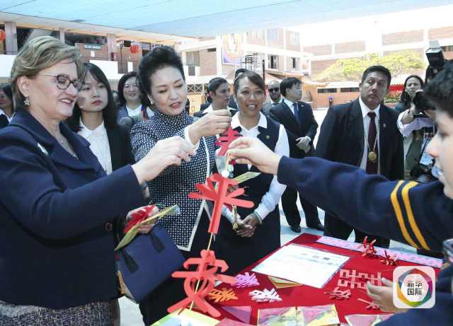 ??? 彭麗媛抵達時,秘魯總統(tǒng)夫人蘭格和學校校長在下車處迎接,校長為彭麗媛獻上鮮花。若望二十三世秘中學校創(chuàng)辦于1962年,是從幼兒園到中學教育的全日制學校,也是秘魯乃至南美洲最具影響的華文學校之一。