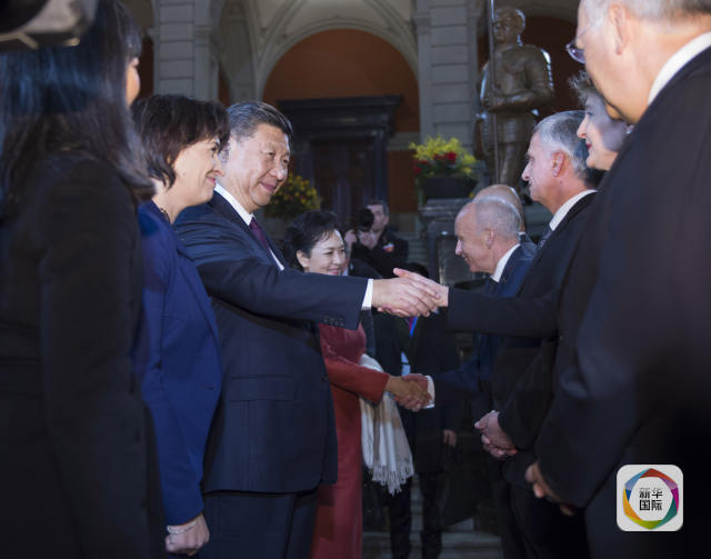 瑞方對習主席訪問給予高規(guī)格禮遇:瑞士聯(lián)邦主席洛伊特哈德全程陪同,習主席抵達瑞士當天,瑞方以三場儀式表達盛情: