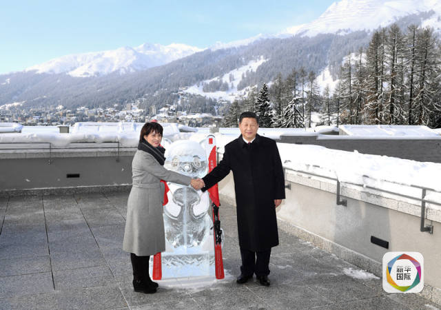 1月17日,國家主席習(xí)近平同瑞士聯(lián)邦主席洛伊特哈德在達(dá)沃斯共同啟動中瑞旅游年。兩國元首在熊貓冰雕像和印有中瑞兩國國旗及“中瑞旅游年”字樣的滑雪板旁合影留念。新華社記者饒愛民攝