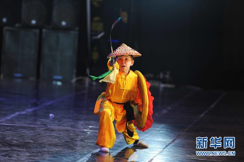 1月18日晚,烏茲別克斯坦首都塔什干人民友誼宮,烏茲別克斯坦中華民族文化中心武術(shù)隊(duì)隊(duì)員在表演武術(shù)。