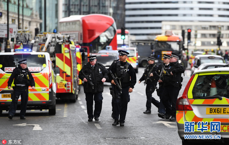 當(dāng)?shù)貢r(shí)間2017年3月22日,英國倫敦,英國威斯敏斯特議會大廈附近發(fā)生襲擊事件,威斯敏斯特橋上有車輛沖撞行人;另外有持刀歹徒攻擊議會大廈執(zhí)勤警察后被擊斃,報(bào)道稱多人受傷。襲擊發(fā)生后,議會大廈臨時(shí)關(guān)閉,英國議會下院的會議暫停。倫敦警方目前暫時(shí)將此事作為恐怖事件處理。據(jù)外媒報(bào)道,英國警方封閉了倫敦議會大廈周邊的街道。圖片來源:東方IC