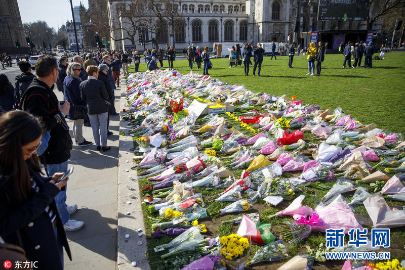 英國民眾在議會外擺放鮮花 哀悼恐襲受害者(組圖)