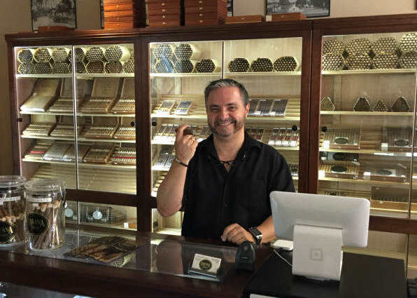 海湖莊園附近一家雪茄制作店店主拉扎羅·金塔納。(新華社記者陸佳飛攝)