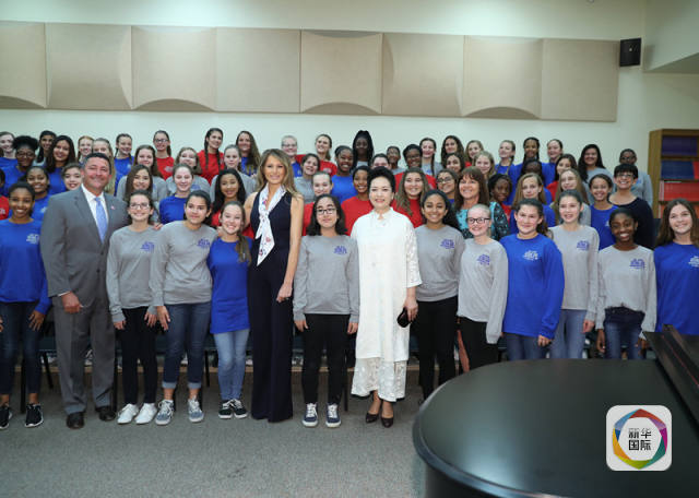 國(guó)家主席習(xí)近平夫人彭麗媛首先參觀巴克藝術(shù)中學(xué)的聲樂(lè)教室,她親切地向?qū)W生們問(wèn)好,并欣賞幾十名學(xué)生們演唱的音樂(lè)劇《小婦人》選段《出色》。彭麗媛稱贊學(xué)生們唱得很好。