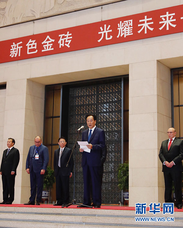 6月7日,金磚國(guó)家媒體聯(lián)合攝影展在北京中國(guó)國(guó)家博物館開幕,由金磚五國(guó)主流媒體共同提供的170余幅圖片與公眾見面,全面展示了金磚國(guó)家合作的豐碩成果。這是新華社社長(zhǎng)蔡名照在攝影展開幕式上致辭。新華社記者 沈伯韓 攝