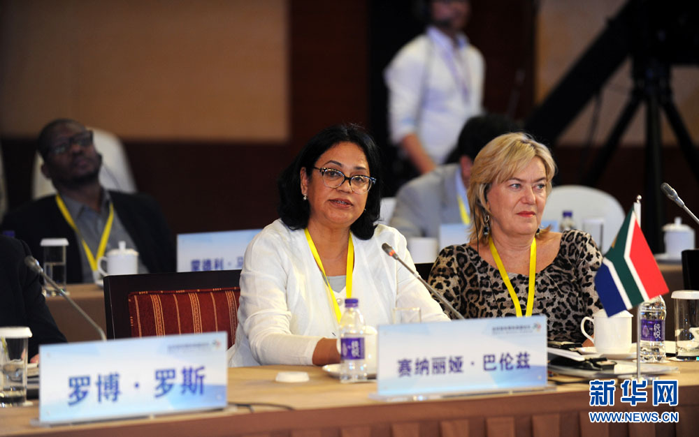 金磚國家媒體高端論壇開幕式6月8日在北京舉行。圖為論壇共同主席、南非獨立傳媒集團幕僚長賽納麗婭·巴倫茲女士發(fā)表演講。 新華網 孫韜 攝