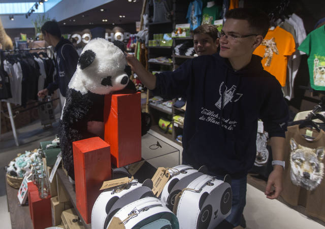 6月24日,來自四川成都大熊貓繁育研究基地的“夢夢”和“嬌慶”抵達柏林。在兩只可愛的大熊貓順利通過隔離檢疫期后,位于柏林動物園內(nèi)的大熊貓館即將正式對公眾開放。柏林動物園準(zhǔn)備了數(shù)十種熊貓周邊商品,包括玩偶、畫冊、飾品、杯子和包袋等。