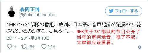 節(jié)目播出以后,在日本引起了強烈反響。許多正義的日本網(wǎng)友義憤填膺,紛紛發(fā)出聲音譴責當年日軍的暴行。