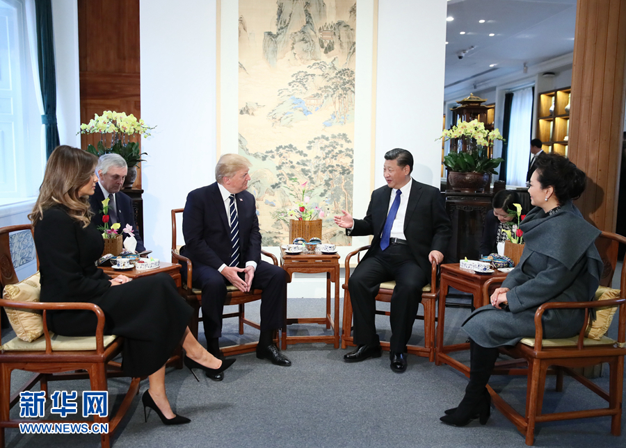 4個(gè)多小時(shí)的互動(dòng)交流,氣氛融洽。臨別時(shí),特朗普總統(tǒng)夫婦再次感謝習(xí)近平主席夫婦的熱情接待和周到安排,期待訪華取得積極成果。