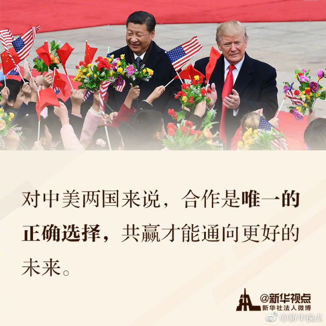 【關(guān)于新時(shí)代的中美關(guān)系,習(xí)近平這樣說(shuō)】美國(guó)總統(tǒng)特朗普訪華期間,對(duì)于新時(shí)代的中美關(guān)系,習(xí)近平主席作出了哪些重要論述?為未來(lái)中美關(guān)系發(fā)展定下了什么基調(diào)?一起來(lái)學(xué)習(xí)這些金句吧!