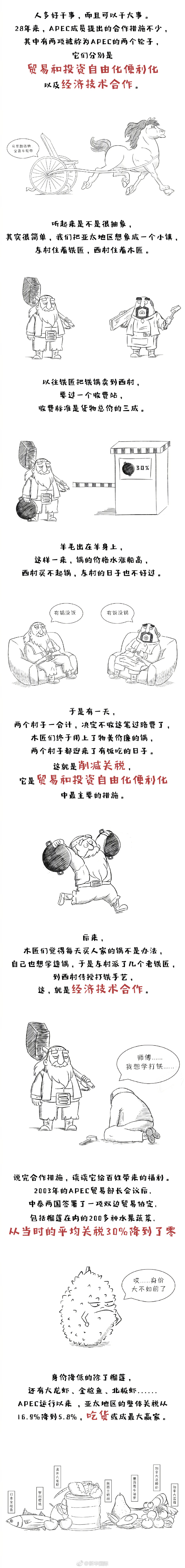 亞太經(jīng)合組織(APEC)第二十五次領(lǐng)導(dǎo)人非正式會(huì)議定于10日至11日在越南峴港舉行。APEC是啥?和你我生活有啥關(guān)系?一組漫畫告訴你。