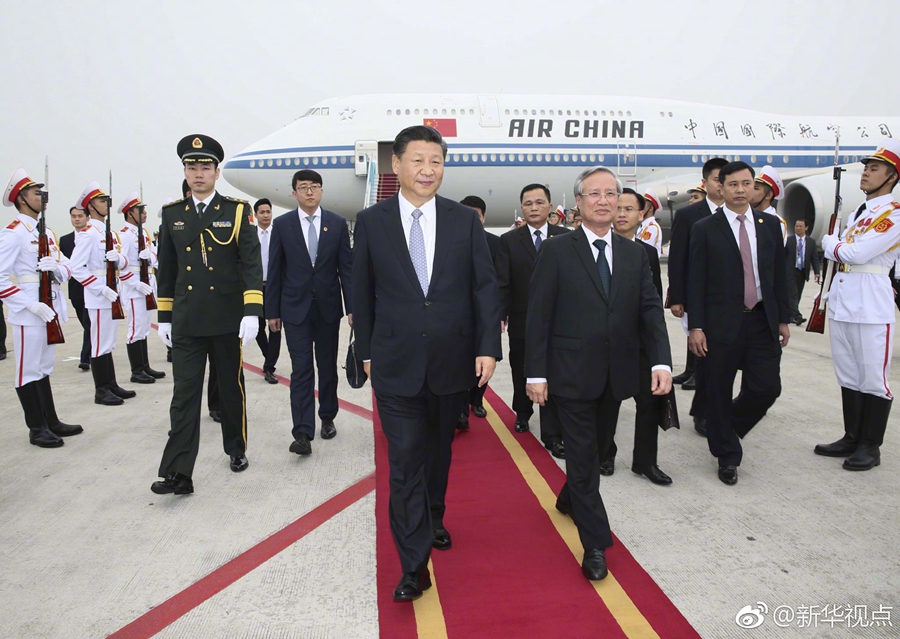 新華網(wǎng)北京11月12日電 中共中央總書記、國(guó)家主席習(xí)近平12日抵達(dá)河內(nèi),開始對(duì)越南社會(huì)主義共和國(guó)進(jìn)行國(guó)事訪問。(攝影:新華社記者蘭紅光 ?據(jù)新華社“新華視點(diǎn)”微博報(bào)道)