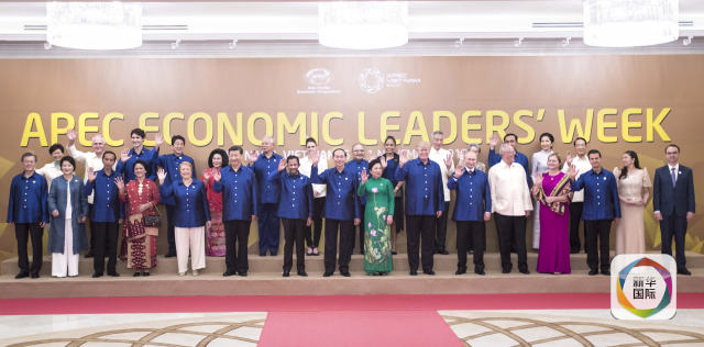11月11日,亞太經(jīng)合組織第二十五次領(lǐng)導(dǎo)人非正式會(huì)議在越南峴港舉行。國(guó)家主席習(xí)近平出席并發(fā)表題為《攜手譜寫亞太合作共贏新篇章》的重要講話。這是會(huì)議期間,國(guó)家主席習(xí)近平同其他亞太經(jīng)合組織成員經(jīng)濟(jì)體領(lǐng)導(dǎo)人、代表合影。新華社記者李濤攝