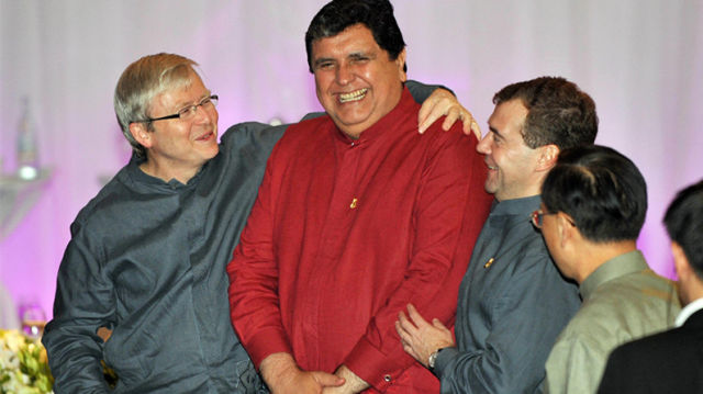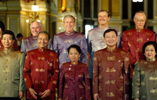 時(shí)任印尼總統(tǒng)蘇哈托贈(zèng)送每位領(lǐng)導(dǎo)人一件巴提克——一種蠟染印花襯衣。