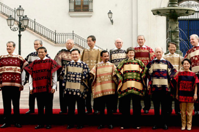1993年,首屆APEC領(lǐng)導(dǎo)人非正式會(huì)議在美國西雅圖召開。各經(jīng)濟(jì)體領(lǐng)導(dǎo)人不帶助手和隨身翻譯,不穿正裝。從那以后,在一年一度的APEC領(lǐng)導(dǎo)人非正式會(huì)議期間,東道主通常會(huì)為與會(huì)領(lǐng)導(dǎo)人提供特別制作的當(dāng)?shù)貍鹘y(tǒng)服裝,在宣介東道主傳統(tǒng)文化的同時(shí),也體現(xiàn)“亞太大家庭”的理念。