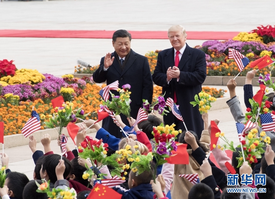 11月9日,國家主席習(xí)近平在北京人民大會堂東門外廣場舉行歡迎儀式,歡迎美利堅合眾國總統(tǒng)唐納德·特朗普對中國進(jìn)行國事訪問。 新華社記者李學(xué)仁 攝