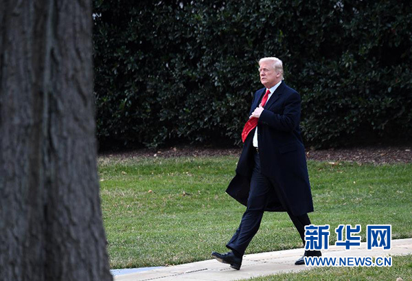 12月22日,在美國(guó)華盛頓白宮,美國(guó)總統(tǒng)特朗普簽署減稅法案后準(zhǔn)備乘直升機(jī)離開(kāi)。 新華社記者殷博古攝