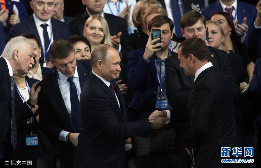 當(dāng)?shù)貢r(shí)間2017年12月23日,俄羅斯莫斯科,俄羅斯總統(tǒng)普京出席第17次統(tǒng)一俄羅斯黨大會(huì)。(圖片來(lái)源:視覺(jué)中國(guó))