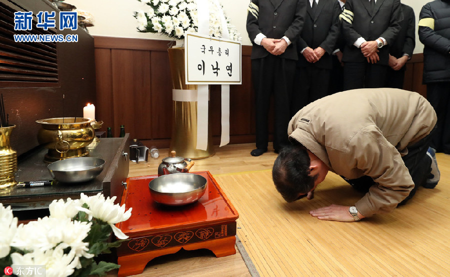 韓國堤川運動中心火災(zāi)致29死 韓總理跪地鞠躬吊唁遇難者