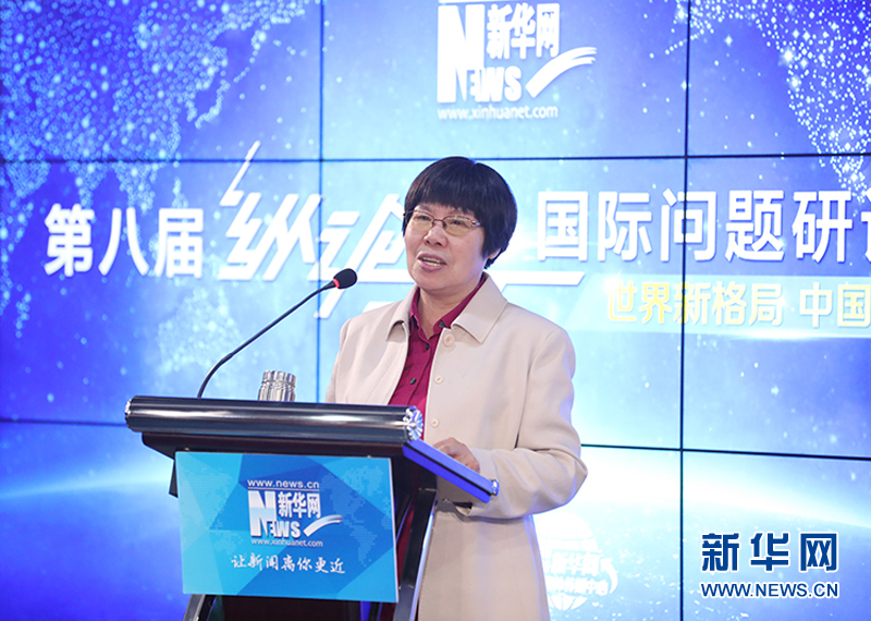 12月26日,新華網(wǎng)第八屆“縱論天下”國際問題研討會成功舉行。圖為中國現(xiàn)代國際關(guān)系研究院研究員陳鳳英在主旨演講。新華網(wǎng)發(fā)(郭小天攝)。