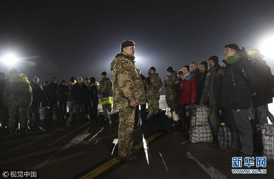 12月27日,烏克蘭哈爾科夫,獲釋戰(zhàn)俘抵達(dá)哈爾科夫。烏克蘭政府軍與東部民間武裝當(dāng)日舉行了大規(guī)模的交換戰(zhàn)俘行動。(圖片來源:視覺中國)